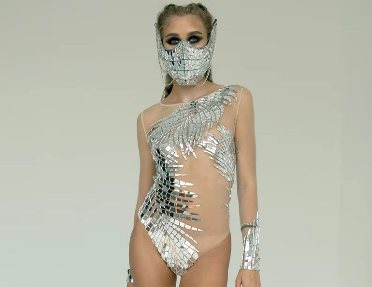 35. Sleeveless Spaghetti Strap Mirror Bodysuit ROBE MIROIR Burning Man Outfit.