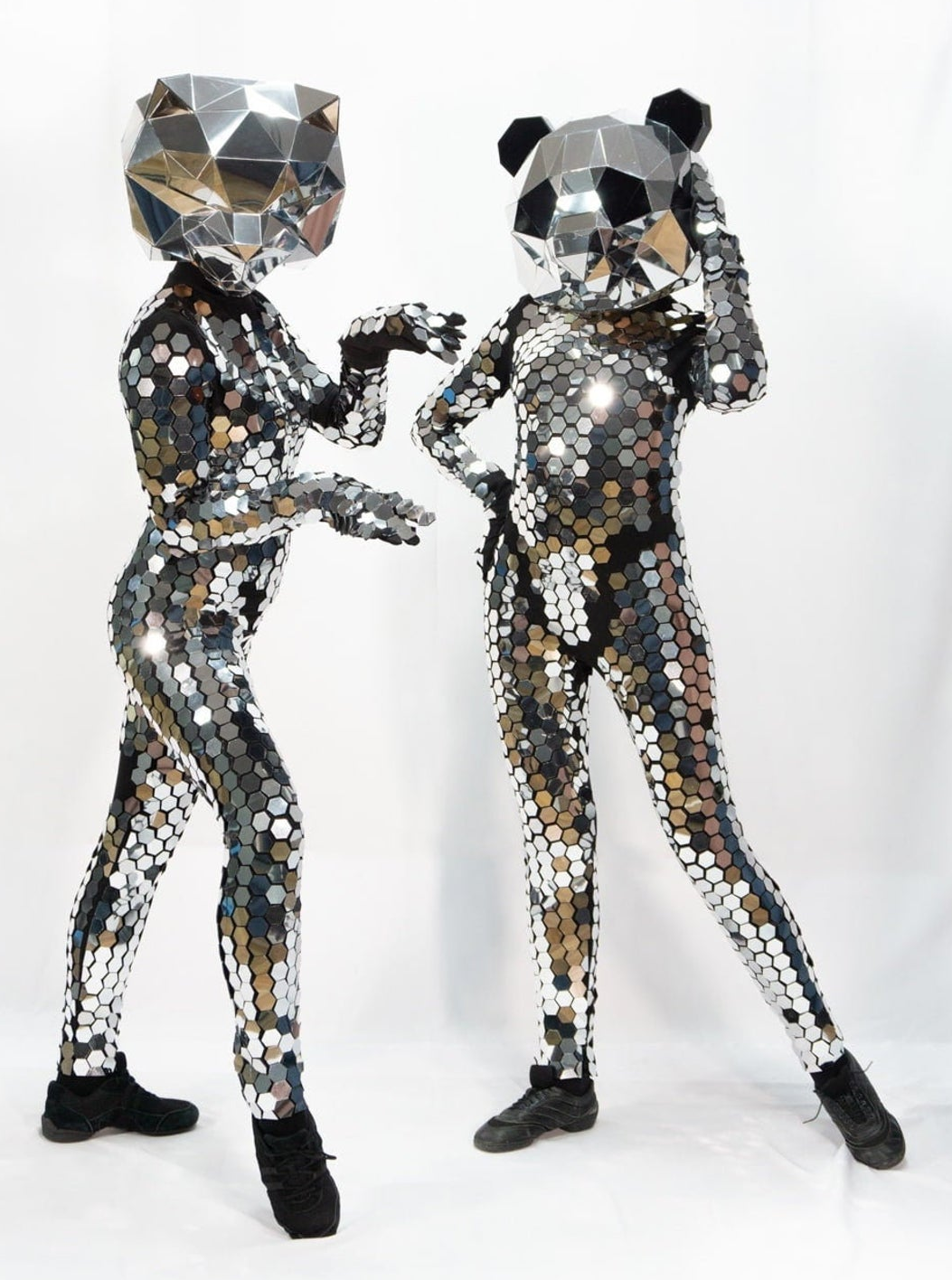20. Silver Mirror Disco One Piece Bodysuit with Animal Mask Disco Ball.