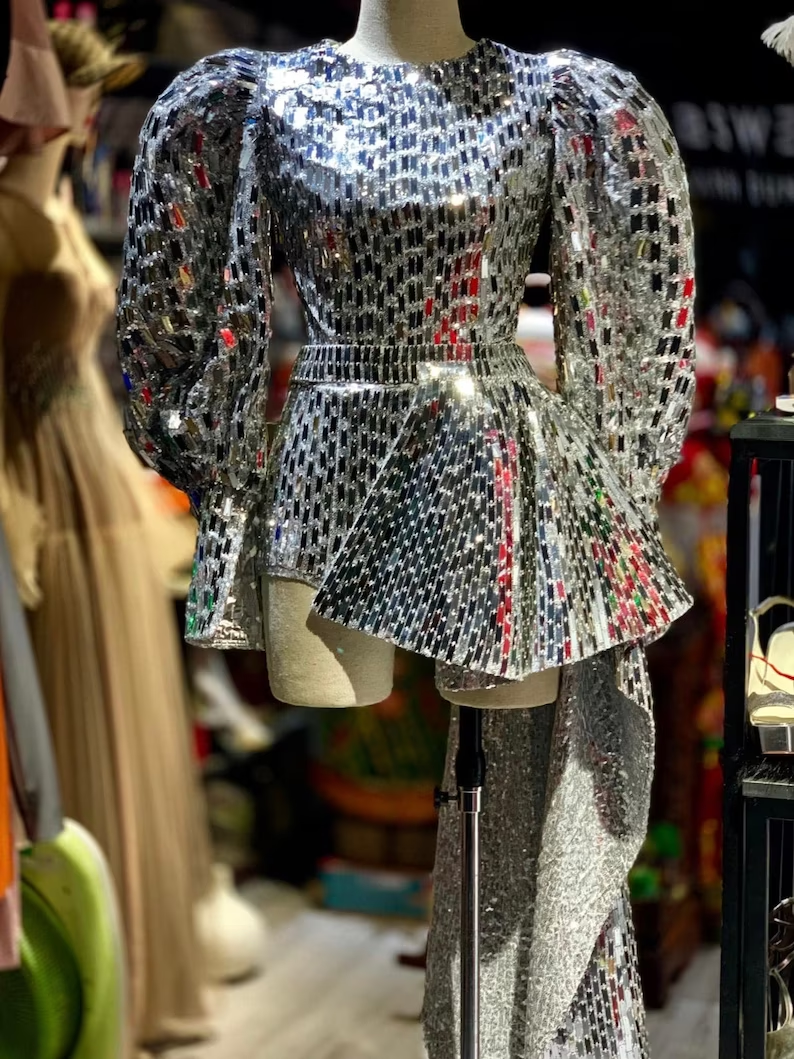 10. Handmade Sequin Disco Mirror Bodysuit for Women.